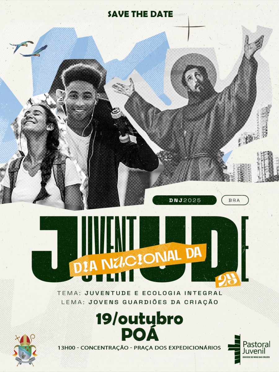 No dia 19 de outubro, o Setor Juventude Diocesano realiza o Dia Nacional da Juventude (DNJ) com o tema “Juventude e Ecologia Integral” e o lema “Jovens Guardiões da Criação”, na Paróquia Nossa Senhora de Lourdes, em Poá (SP).