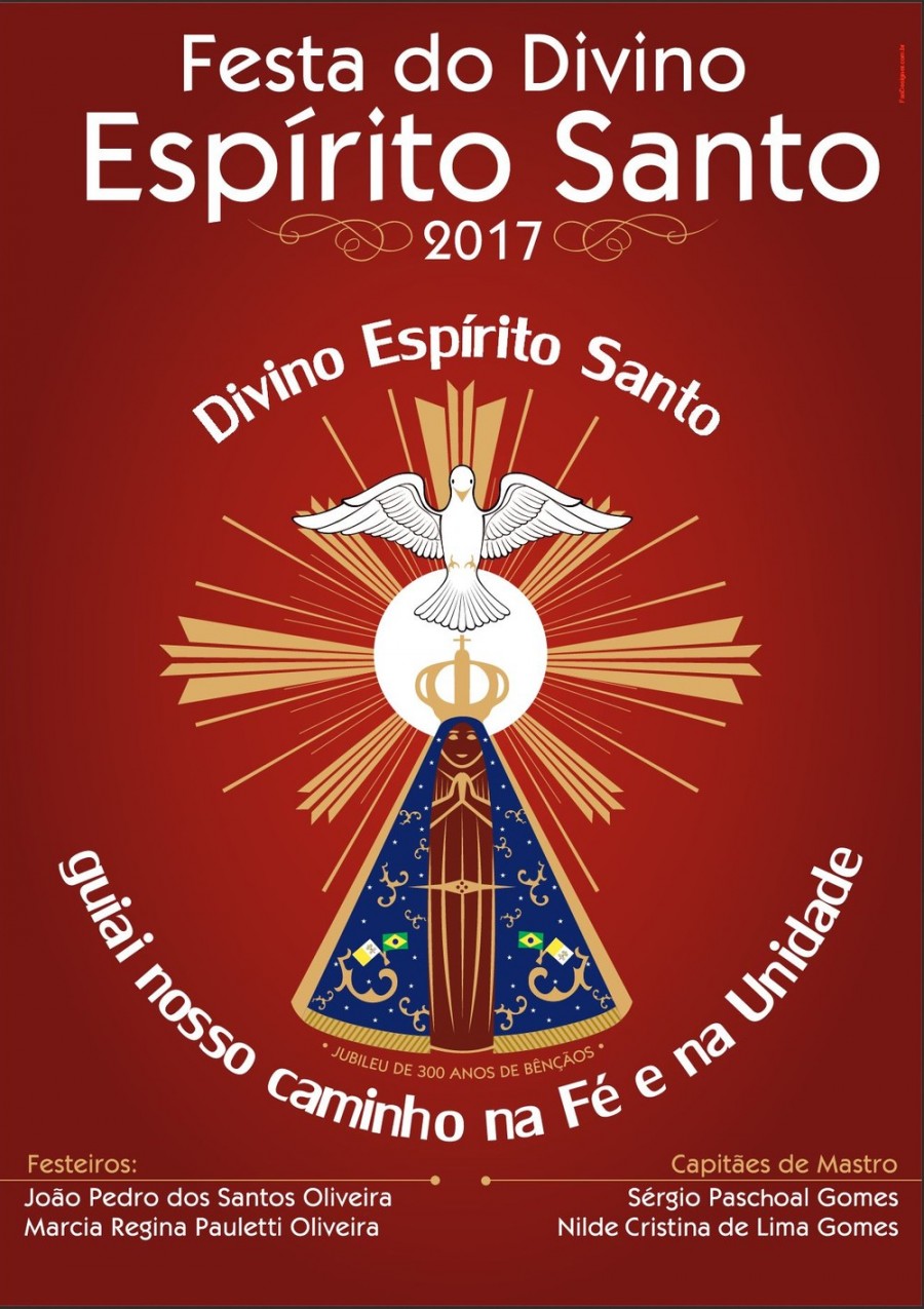 “Divino Espírito Santo, guiai nosso caminho na Fé e na Unidade” é o lema da Festa do Divino 2017, ano da celebração dos trezentos anos do encontro da imagem de Nossa Senhora da Conceição Aparecida pelos pescadores, em 1717, nas águas do Rio Paraíba.