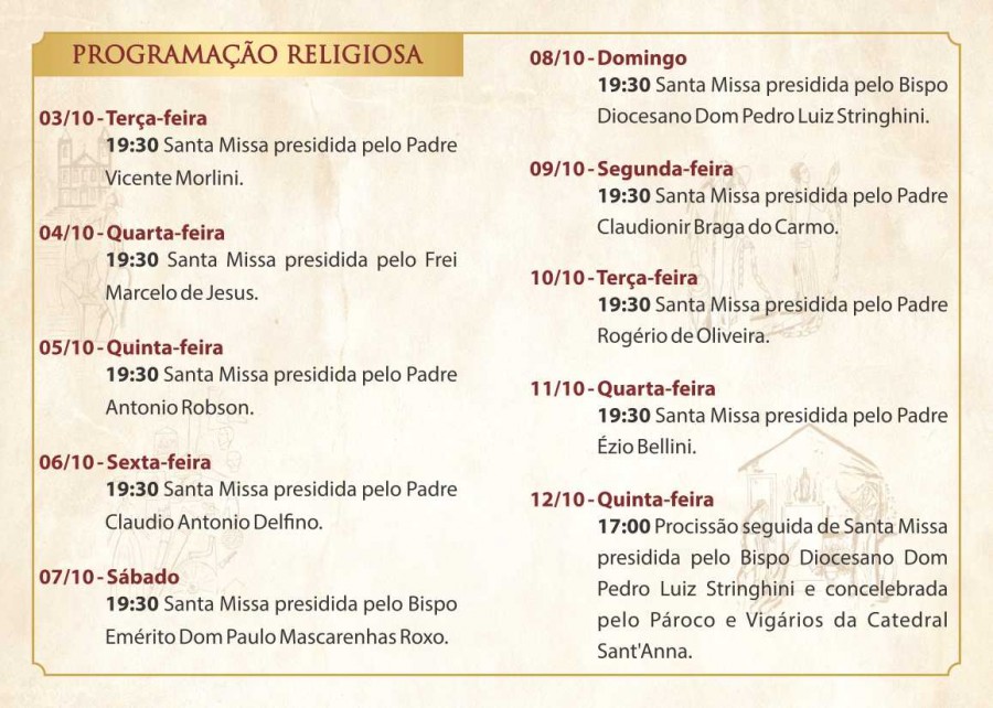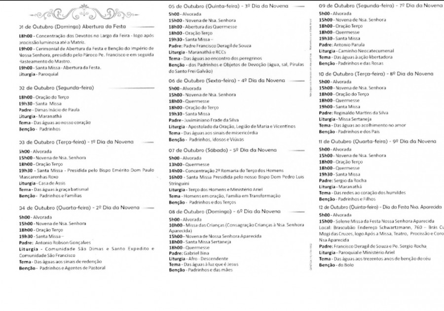 Programação das paróquias para a Festa de Nossa Senhora Aparecida